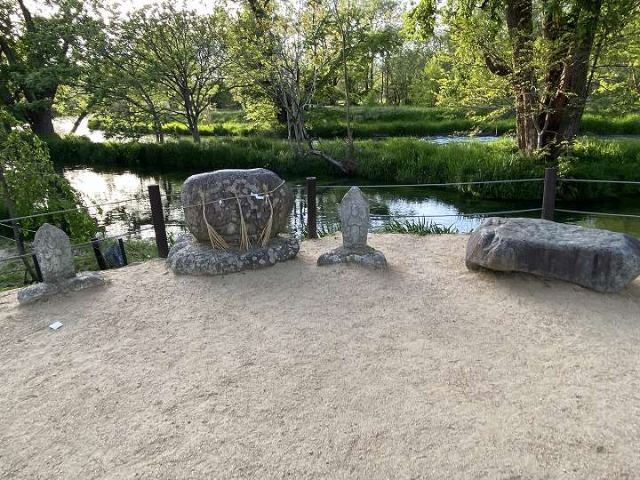 (蓼川のほとりに立つ石仏)