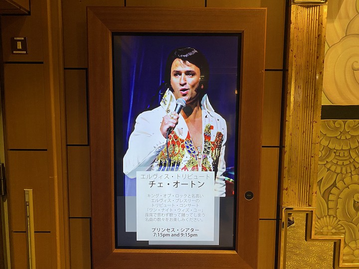 (デッキ7 プリンスシアター) ![]() ___________(シアター全景) ![]() _____(エルビス トリビュート・チェ オートン) ![]() _________(エルビスのそっくりさん) ![]() ______(ジャマイカ出身のモニーク デハニー) ![]() ______(観客全員スタンディングで歌った) ![]() ______(プロダクション ショー・ブラボー) ![]() ________(ミュージカル風のステージ) ![]() _________(ボーン トゥビー ワイルド) ![]() _______(ステージ上にピンクのキャデラック) その他にジャグリングとダイアン吉日さんの落語もありました。