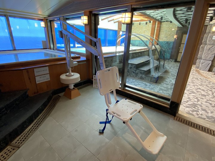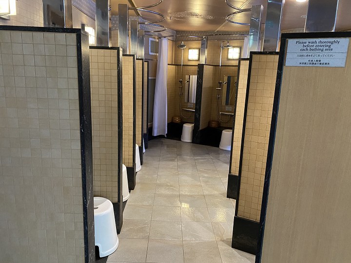(デッキ15 泉の湯) ![]() ____________(右奥が受付) ![]() __________(この日の男湯は「岩」) ![]() ____________(玄関付近) ![]() _________(ドレッシングコーナー) ![]() ________(タオルが用意されたロッカー) ![]() _____________(洗い場) ![]() ____________(アメニティー) ![]() __________(冷水シャワーとサウナ) ![]() ___________(サウナルーム) ![]() _____________(内湯) ![]() ___________(バリアフリー設備) (露天風呂) ![]() ____________((露天風呂) ![]() _________(打たせ湯とシャワー) ![]() ________(冷水器がある くつろぎルーム)