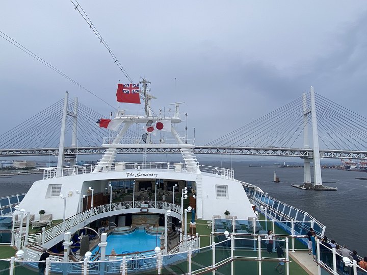 (ベイブリッジをくぐるダイヤモンドプリンセンス)
