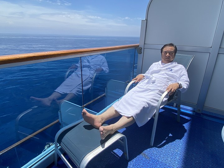 (バルコニーで日光浴)