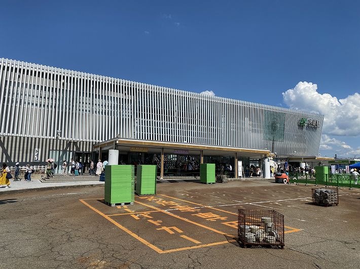 ような改札待ちの通路が作られていて、仮設トイレも沢山並んで