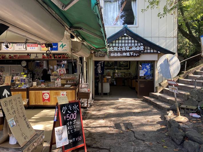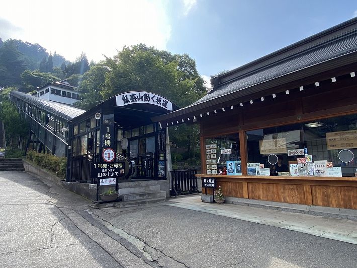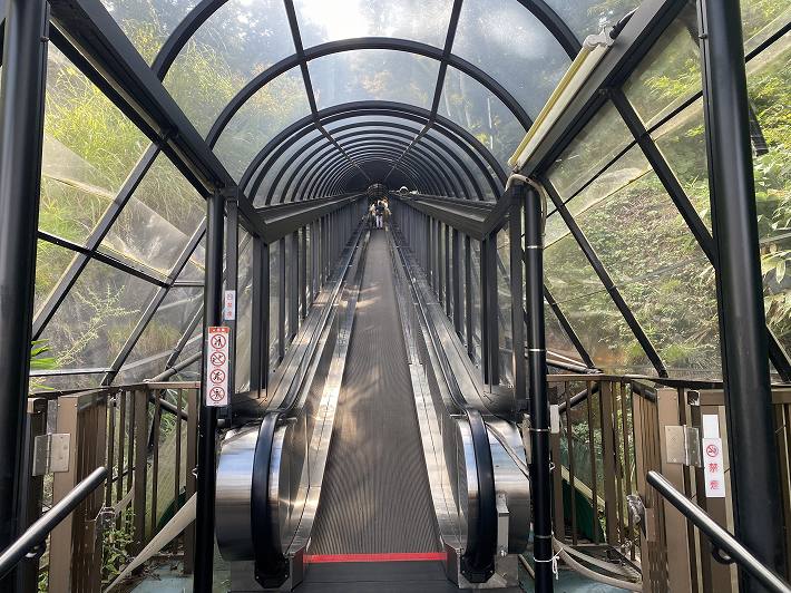 山頂までは183段の傾斜のきつい階段があるので、動く坂道のスロープ