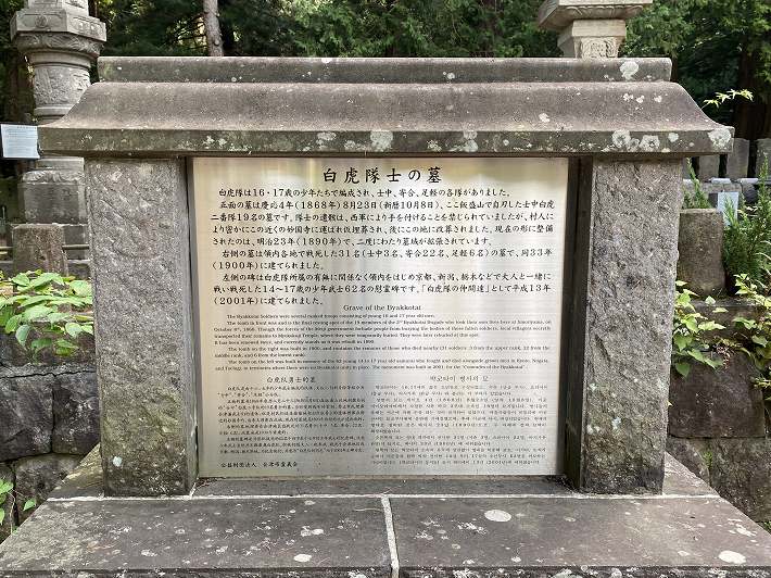 飯盛山で自刃した白虎隊士は20名ですが 1名は蘇生したので、墓碑は