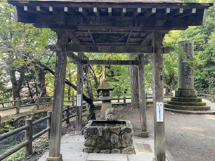 (神社の隣にある戸ノ口堰洞穴の案内板)