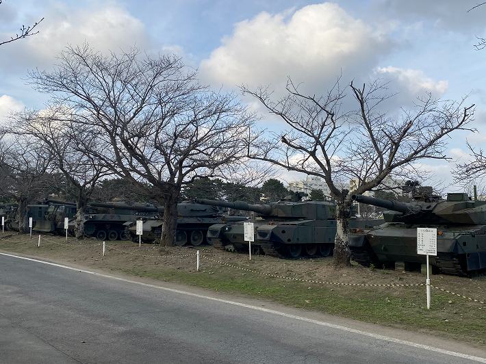 61式、74式、90式、10式戦車の展示車両が見えました。