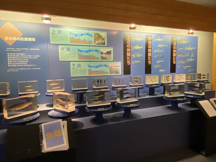 _______(B-1 生態観察室のニジマスとヤマメ)