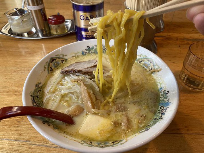 麺は 札幌ーラーメンで良く目にする西山製麺と思われる太めの