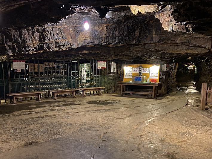 ______(坑道内にある古酒の蔵とおみくじ売り場)