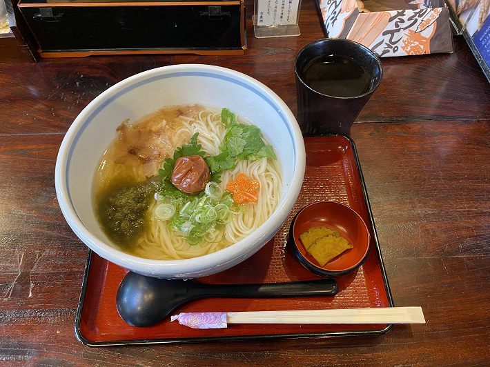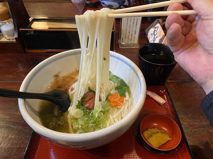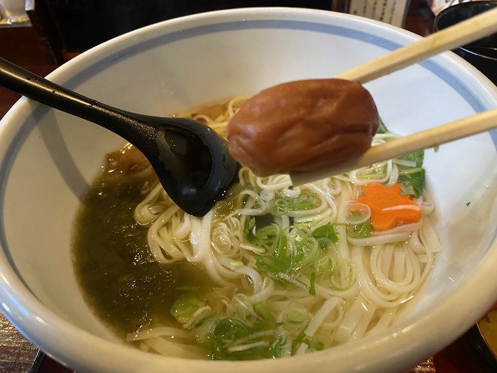 梅おぼろ稲庭うどんは 大きな南高梅と とろろ昆布の風味が香る