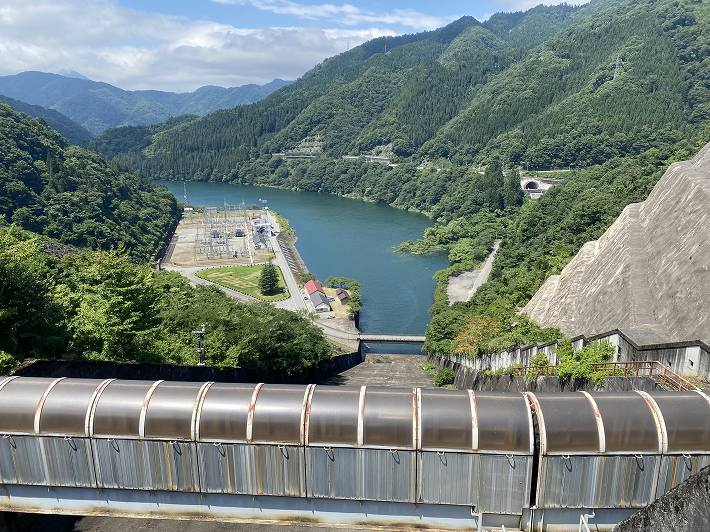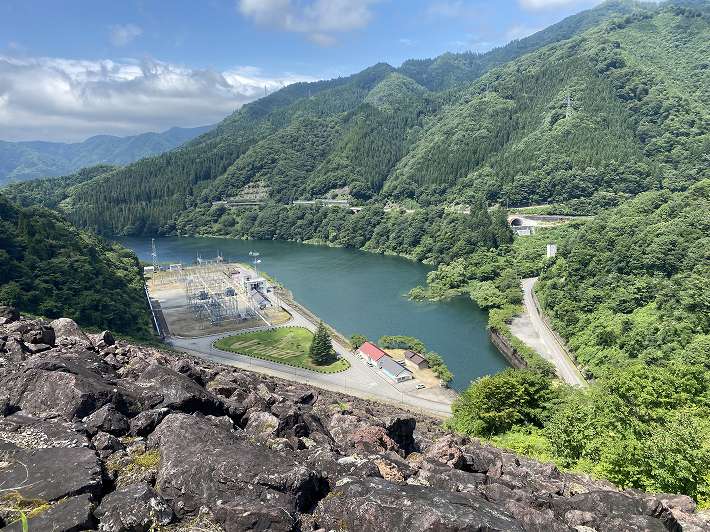 ___(石組のダムの堤体から見下ろした揚水発電用のダム)