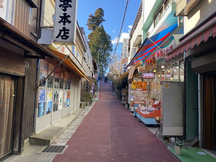 ________(武蔵御嶽神社の下に並ぶ売店)