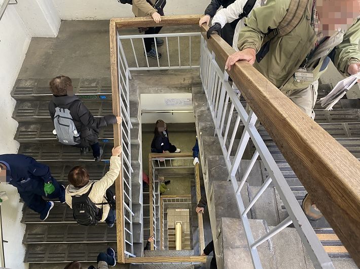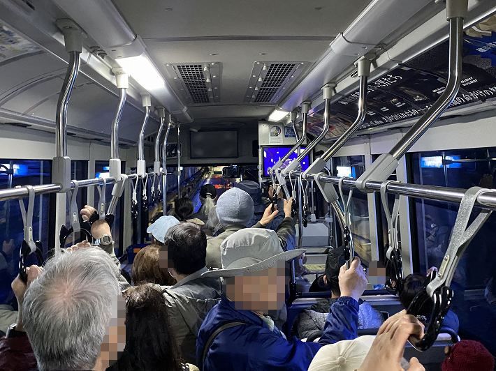 _(青いライトが照らす破砕帯を通過する関電トンネル電気バス)