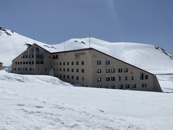 ___(不安定なほど湾曲して見える下流側のダム堤体)