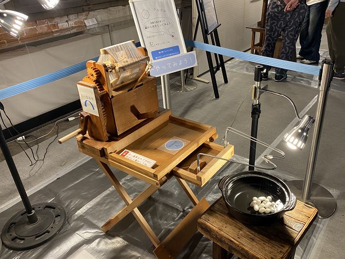 (試して仕組みを理解する手動の繰り糸装置)