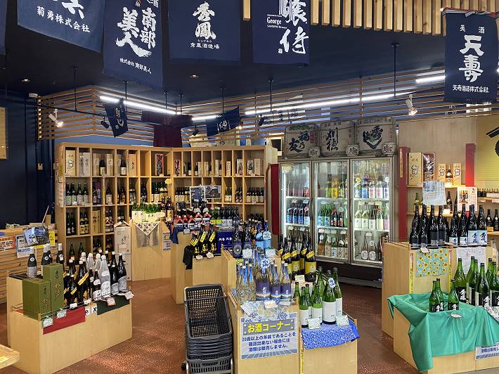 _________(美味しそうな酒が並ぶ店)