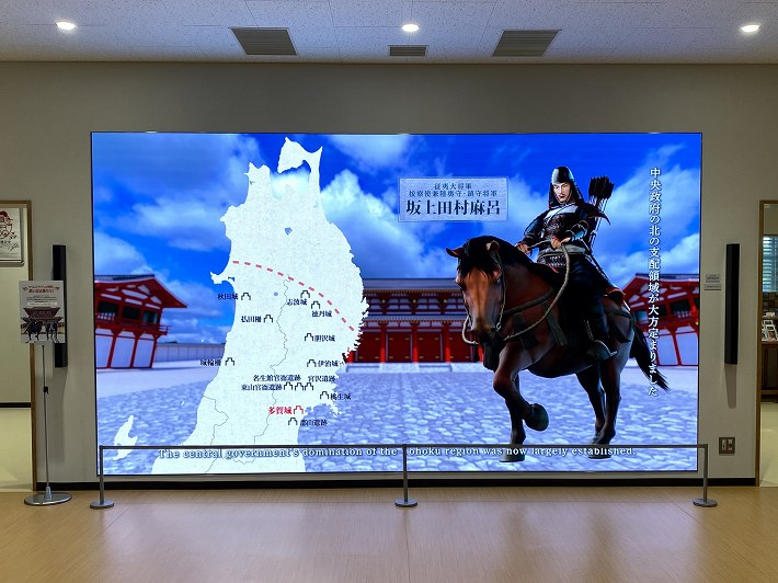 ![]() ________(多賀城跡ガイダンス施設) ![]() ____________(古代の衣装) ![]() ______(復元の様子と国宝・多賀城碑の説明) ![]() ___________(多賀城の変遷) ![]() ________(大型モニターを使った説明) ![]() ___________(南門復元)