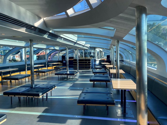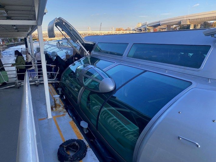 日の出桟橋から立て続けに低い橋をくぐるので屋上デッキは閉鎖