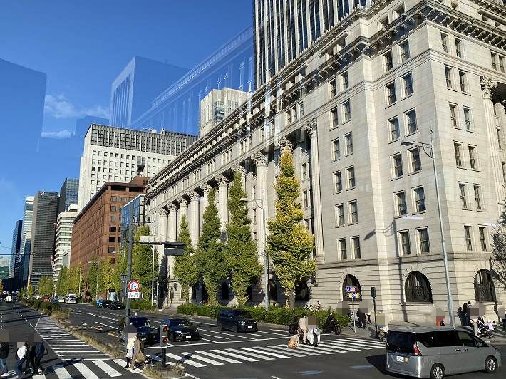 東京駅南口→国会議事堂前の銀杏並木→神宮外苑の銀杏並木→