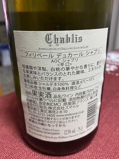 (ワインはフィリベール デュカール シャブリ)