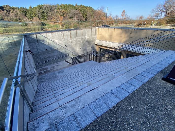 駐車場から地下通路を渡るために下りて行きます。