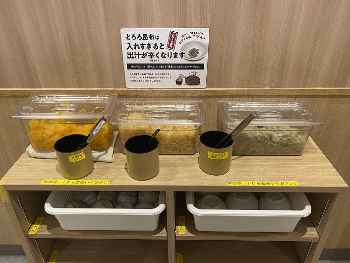 _____(取り放題の壺漬け・天かす・とろろ昆布)