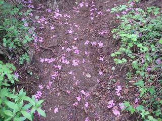 __(20分は長いような短いような)_____(登山道に落ちていたミツバツツジの花)