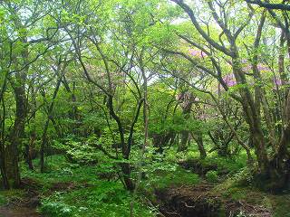 ブナ林に入るとミツバツツジが見受けられるようになりましたが、今年は春先に寒い日が