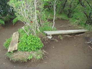 この辺りで 登山道の右にあった展望台らしき所に腰を下ろしたくなる岩がありました。