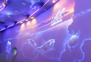 (海獣館の通路に夜光塗料で書かれたイラスト)