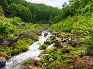 (群生地の中を流れる温泉)
