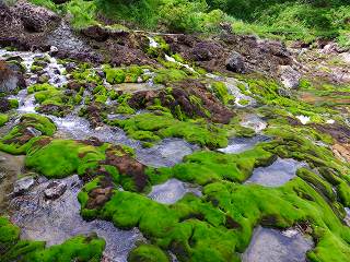 群生地の一番上に 動物が落ちると出られなくなって死んでしまうという、強酸性の温泉が