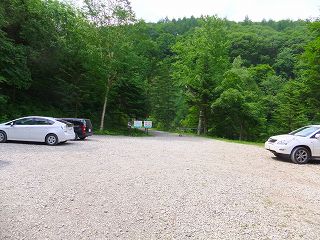 (駐車場、中央の奥がゲート)
