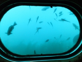 海中展望塔の最下部では 24個の窓から海中の様子を観察できます。