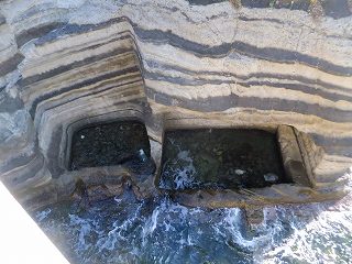 トンネルを抜けて波打つ磯の上に作られた歩道橋を歩いて行きますが、欄干から見下ろした