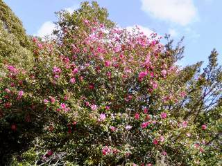 (涅槃物の後ろに咲いてたサザンカ)