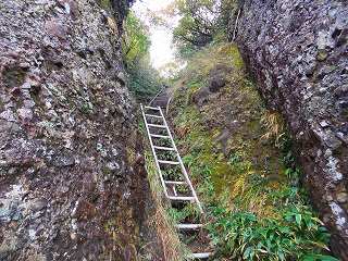 ______(魔利支岳)___________(魔利支岳の取り付きにあるハシゴ)