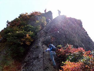 難易度の高いクサリ場が連続する山なのに、この日は女性の割合が多い中高年グループが