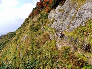 __(山腹をトラバースする迂回路)_______(迂回路の中間にあるクサリ場)