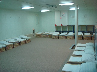 雑魚寝でなく マットレス(シーツ・毛布・枕付き)が1人分ずつ確保されていたので、寝るのに