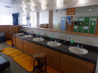 脱衣所は広くて 洗面台とロッカーの数も多い。