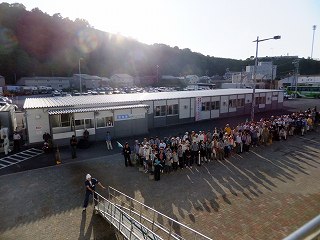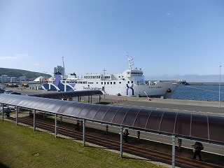 鴛泊港のフェリーターミナルは工事中で、現在はプレハブで営業をしてました。