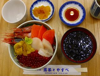 (馬子とやすべの朝市五色丼)