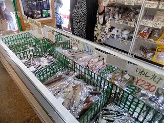 道の駅に併設された土産物売り場には海産物を中心にした商品が並んでます。