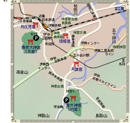 -伊勢自動車道の伊勢西インターより5分。(伊勢神宮のサイトより)