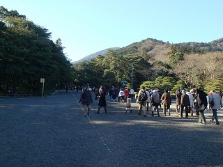 参道では 参拝が近道にならないように外側にある右側を歩きます。