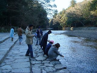 参拝をする前に手水舎で手を清めるのですが、本来のお清めの場所である 五十鈴川で