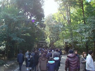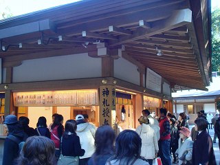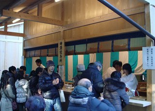 こちらの神札授与所にも沢山の人が並んでいて、神酒授与所では 日本酒が振舞われて