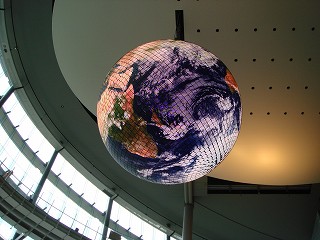 入り口の左にあるホールに 科学未来館のシンボルになっている 巨大な球体があります。