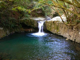 釜滝から左後ろにある階段を登って狭い道を下りると えび滝があります。